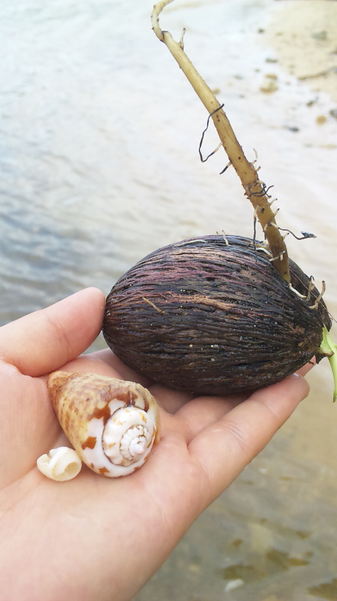 芽衣:砂浜は珊瑚礁まみれ、ヤシの実が流れ着いてたり、ヤドカリが沢山いたりするのよ!