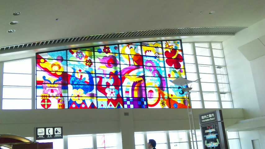 海洋博公園(美ら海水族館)入口、琉球ガラス店、那覇空港のステンドグラス、BLUESEALアイス。
