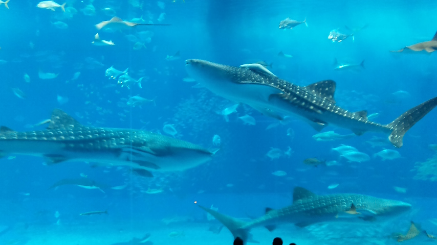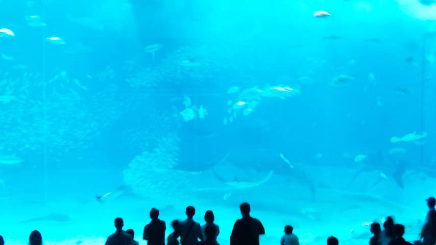 黒潮の海(巨大水槽。ジンベイザメとマンタが主役です)